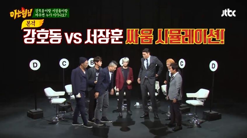 ‘아는 형님’ 1회 방송에서 가장 높은 시청률을 기록한 최고의 1분은 ‘강호동과 서장훈이 싸우면 누가 이길까요?’에 답변하기 위해 강호동과 서장훈이 대치하는 장면으로 밝혀졌다.